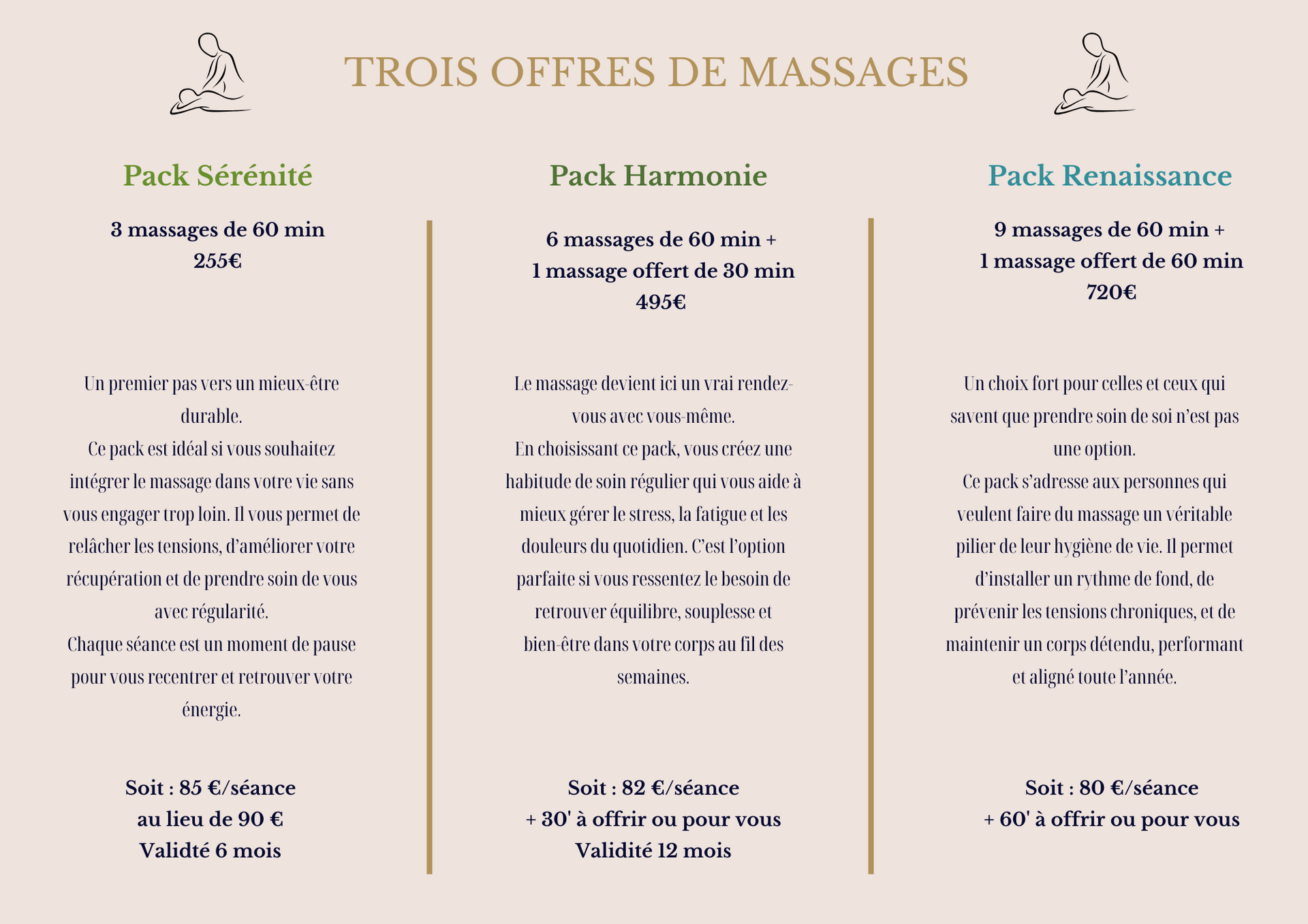 Je suis présents lorsque vous avez besoin de moi, 6j/7. Je vous garantis des séances de bien-être et de qualité